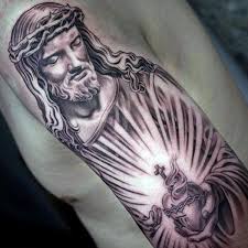 Religious jesus sleeve tattoo design jesus tattoo drawing. Modern tattoo ideas for jesus.